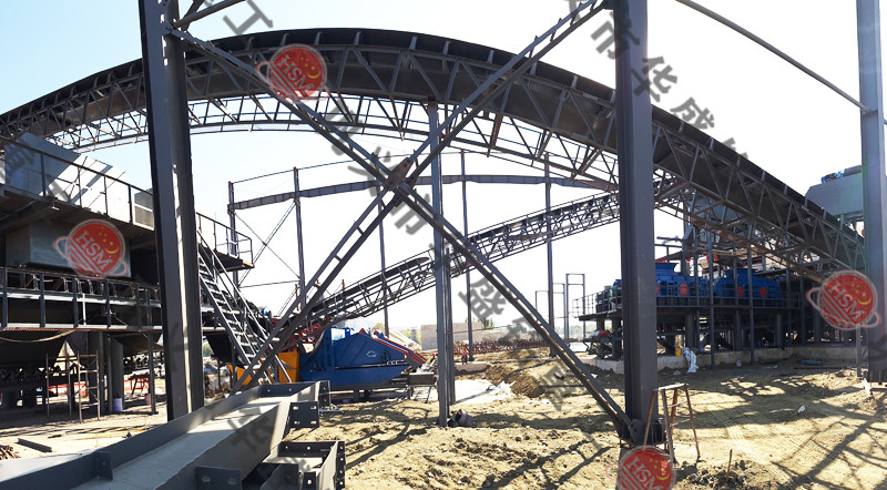 砂厂用制砂机通过辊轮进行破碎作业。物料由进料口进入辊子之间,通过挤压作用破碎河卵石,两辊轮之间有一定的间隙,两辊轮间隙变大,物料出料粒度变大,在压紧弹簧的作用下两辊轮间隙变小,出料粒度变小。通过改变调整间隙,可以控制物料的出料粒度。